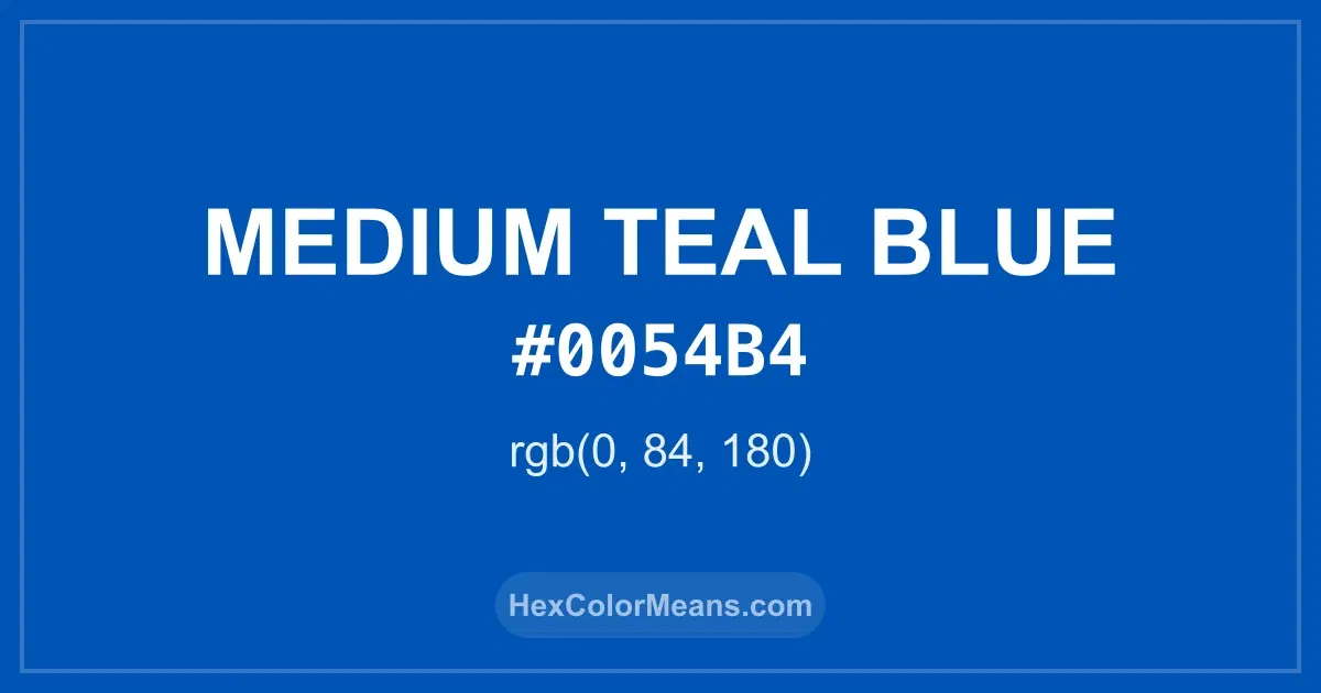 Detailed RGB and CMYK values of Medium Teal Blue (#0054b4) displayed in a horizontal bar provide clear reference for digital and print color accuracy.