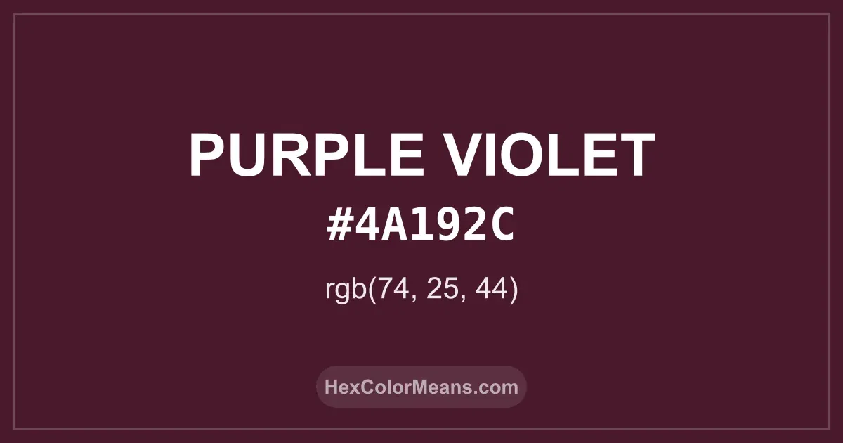 Detailed RGB and CMYK values of Purple Violet (#4a192c) displayed in a horizontal bar provide clear reference for digital and print color accuracy.