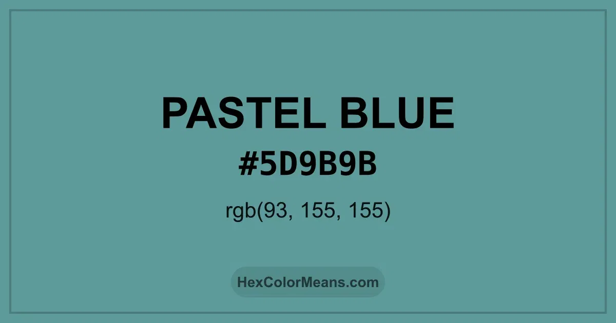 Detailed RGB and CMYK values of Pastel Blue (#5d9b9b) displayed in a horizontal bar provide clear reference for digital and print color accuracy.
