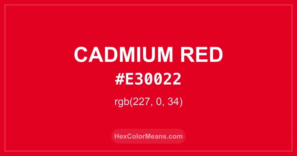 Detailed RGB and CMYK values of Cadmium Red (#e30022) displayed in a horizontal bar provide clear reference for digital and print color accuracy.