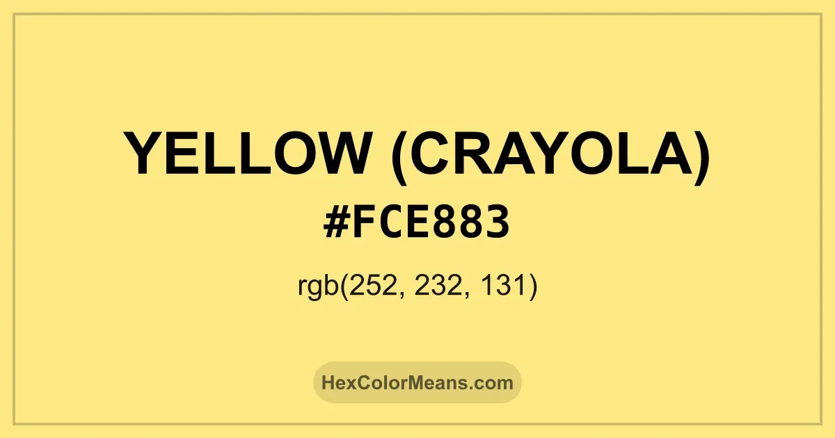 Detailed RGB and CMYK values of Yellow (Crayola) (#fce883) displayed in a horizontal bar provide clear reference for digital and print color accuracy.