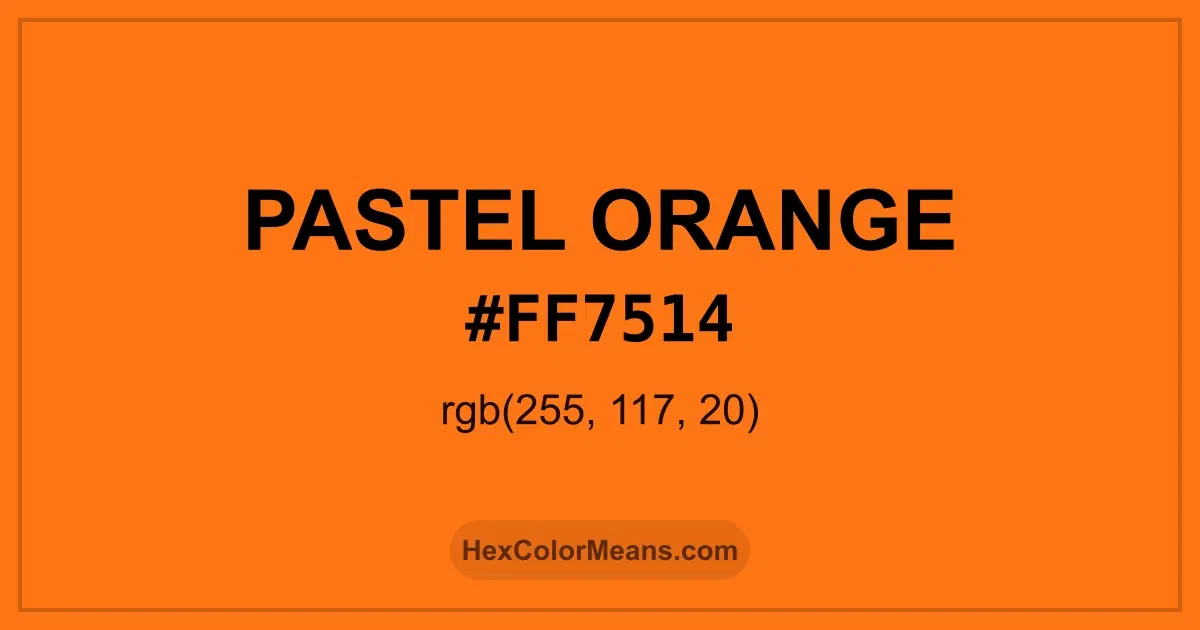 Detailed RGB and CMYK values of Pastel Orange (#ff7514) displayed in a horizontal bar provide clear reference for digital and print color accuracy.