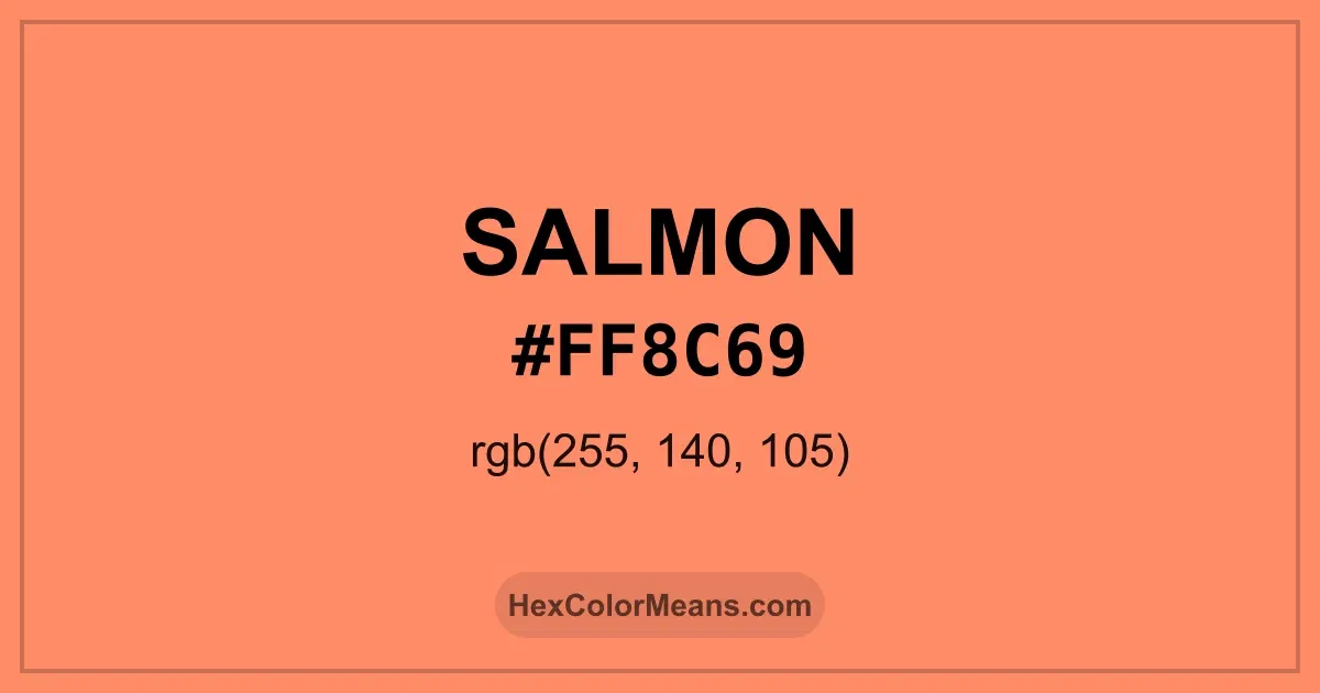 Detailed RGB and CMYK values of Salmon (#ff8c69) displayed in a horizontal bar provide clear reference for digital and print color accuracy.